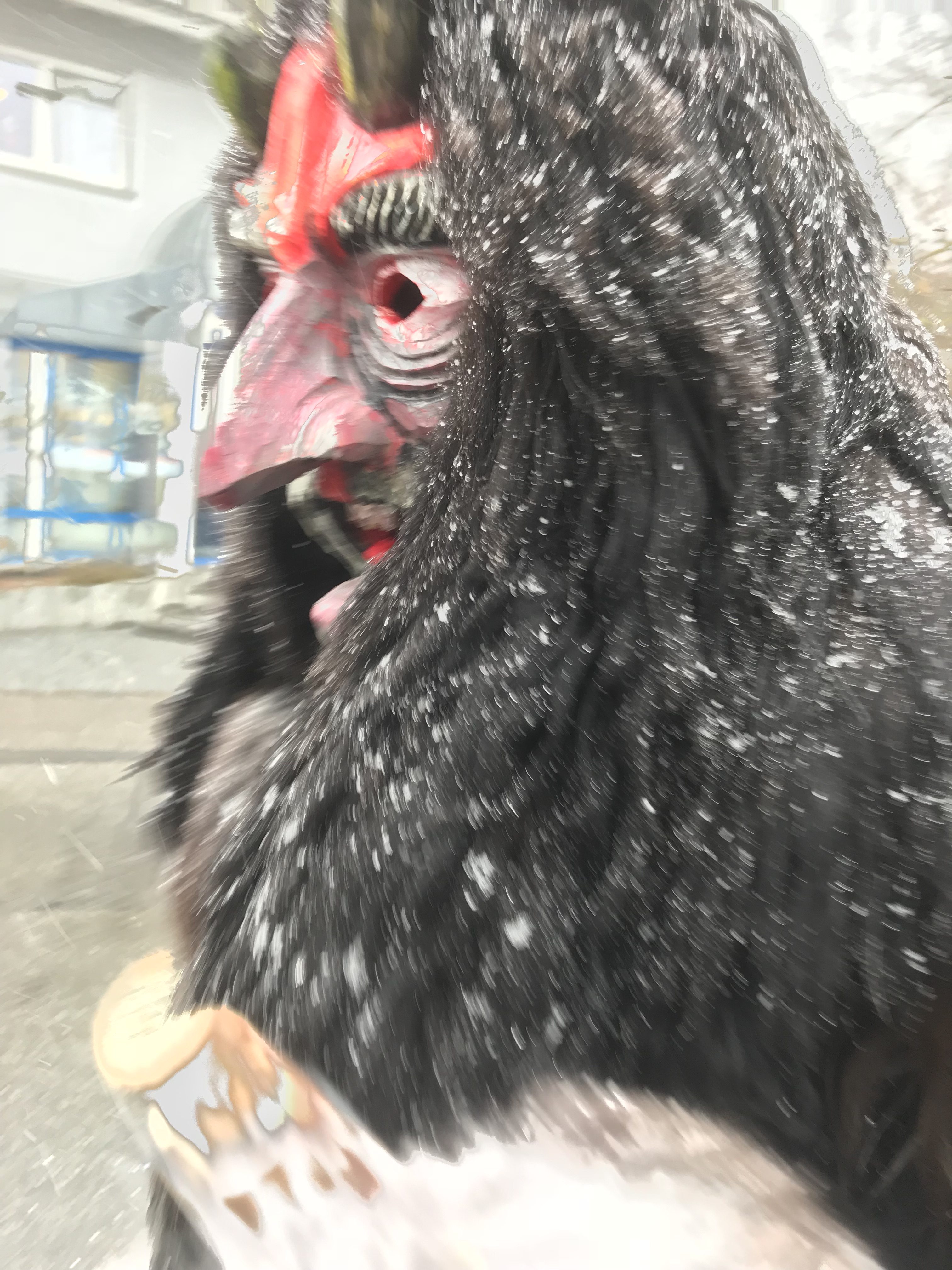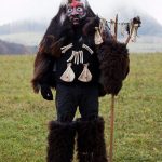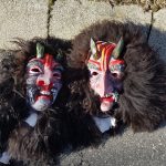 Das Maskenfell besteht aus Schnucken, ebenso unser Rückenfell und die Fellstulpen.
