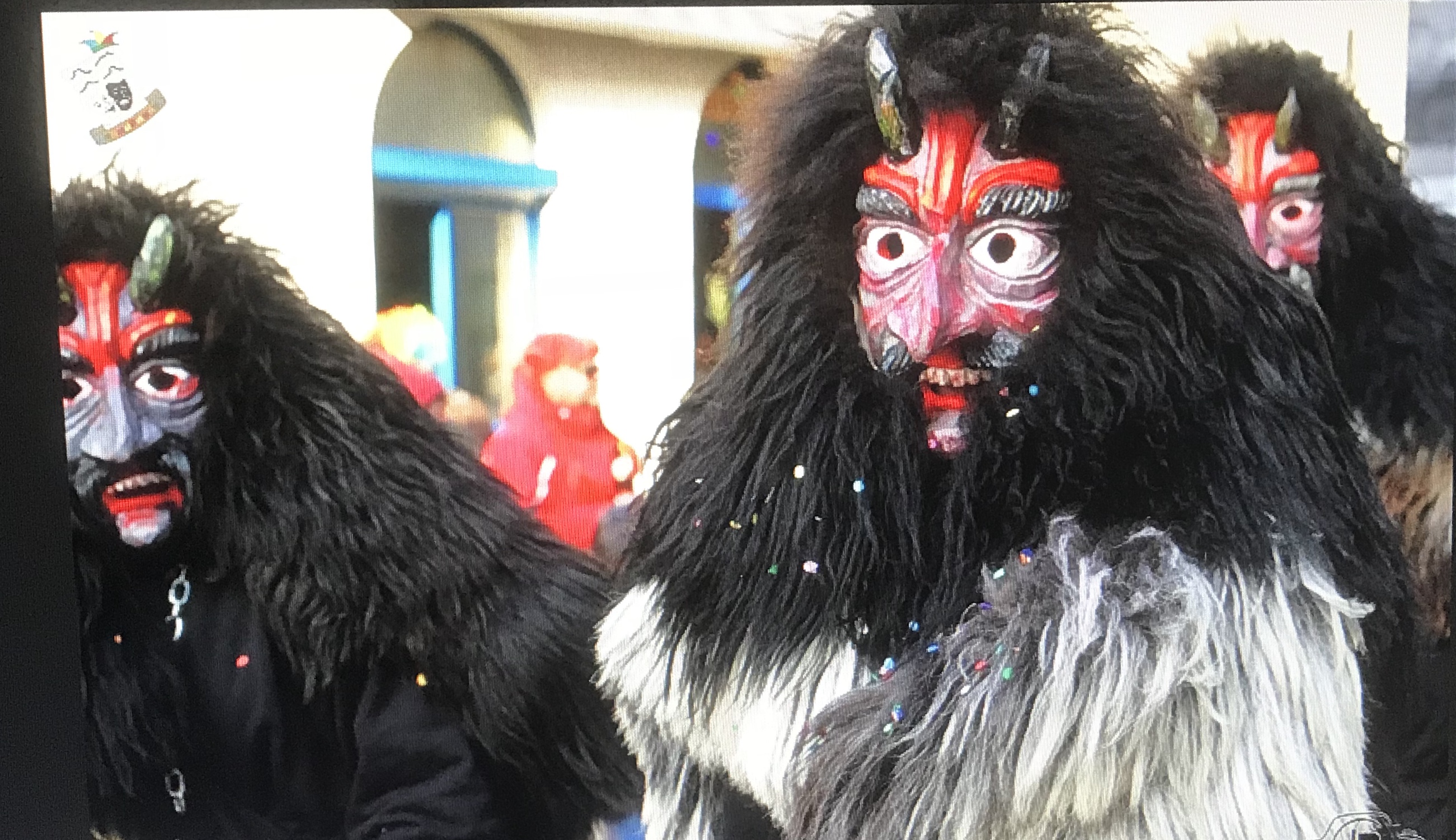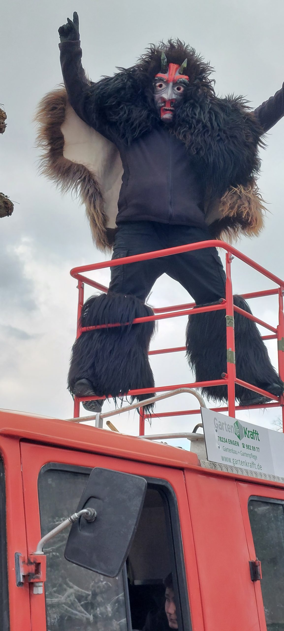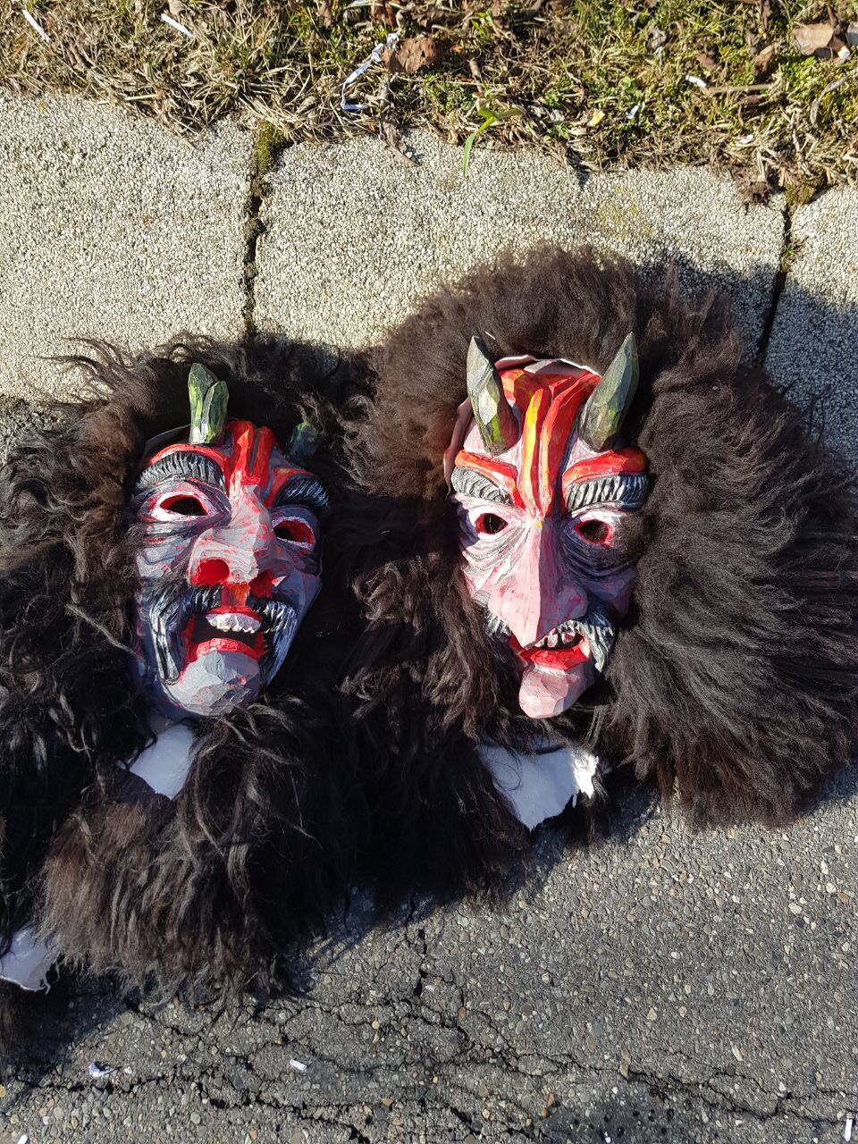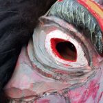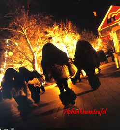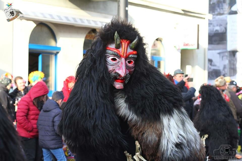 Die Farben und Struktur der Maske symbolisieren die Lava und Glut des Hohenhewen, aus dem der Teufel entstiegen ist.