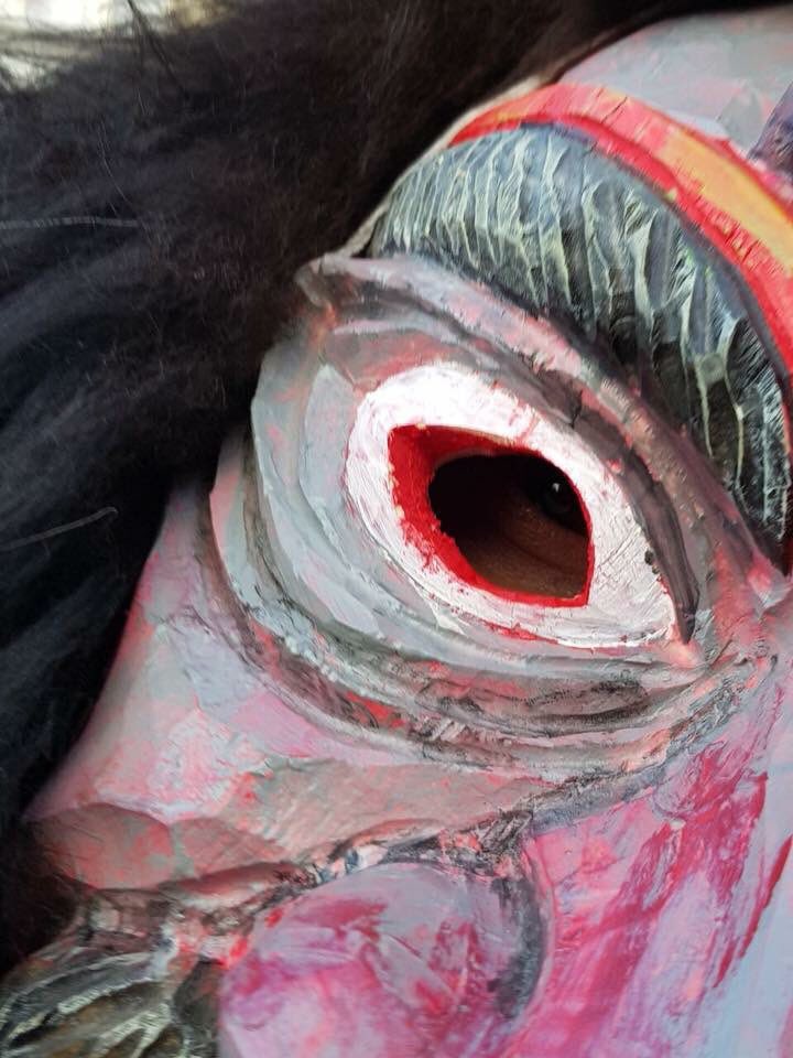 Unsere Maske besteht aus Holz und wird handgeschnitzt und bemalt.